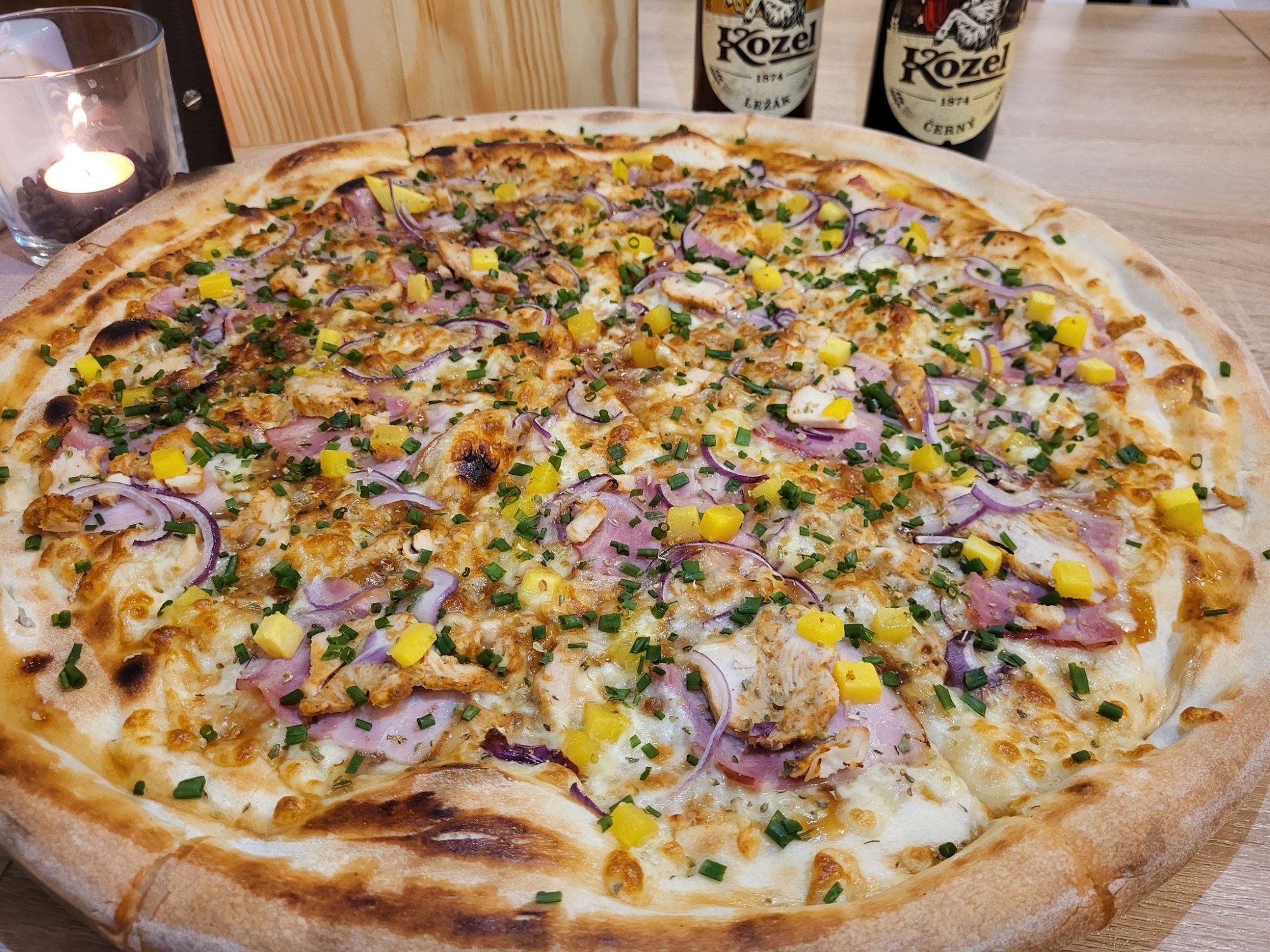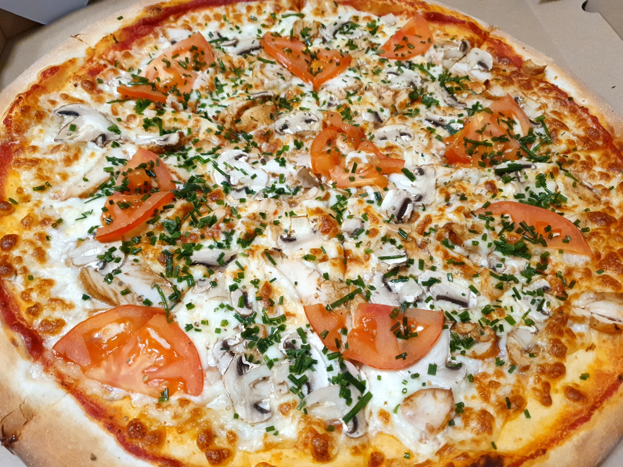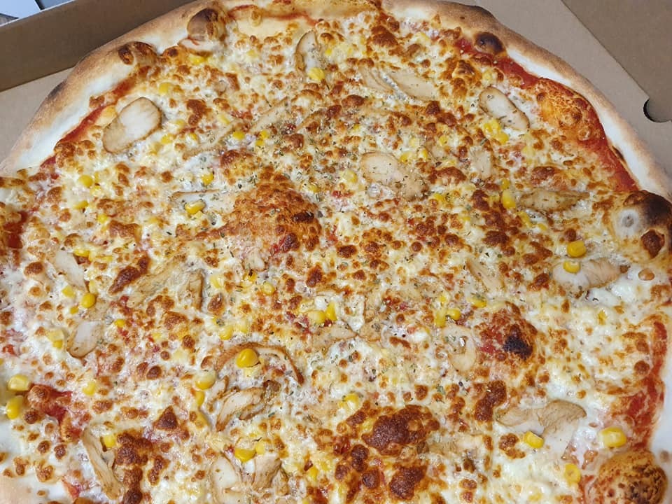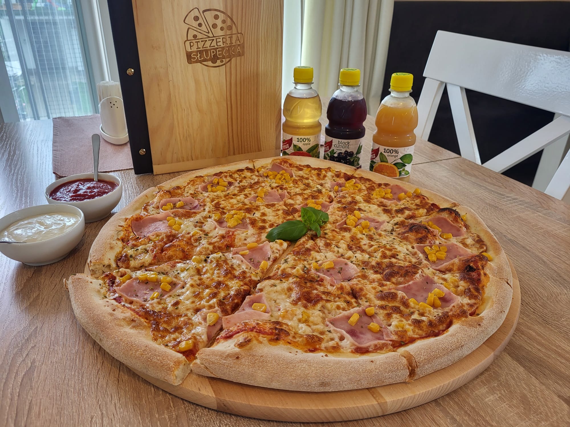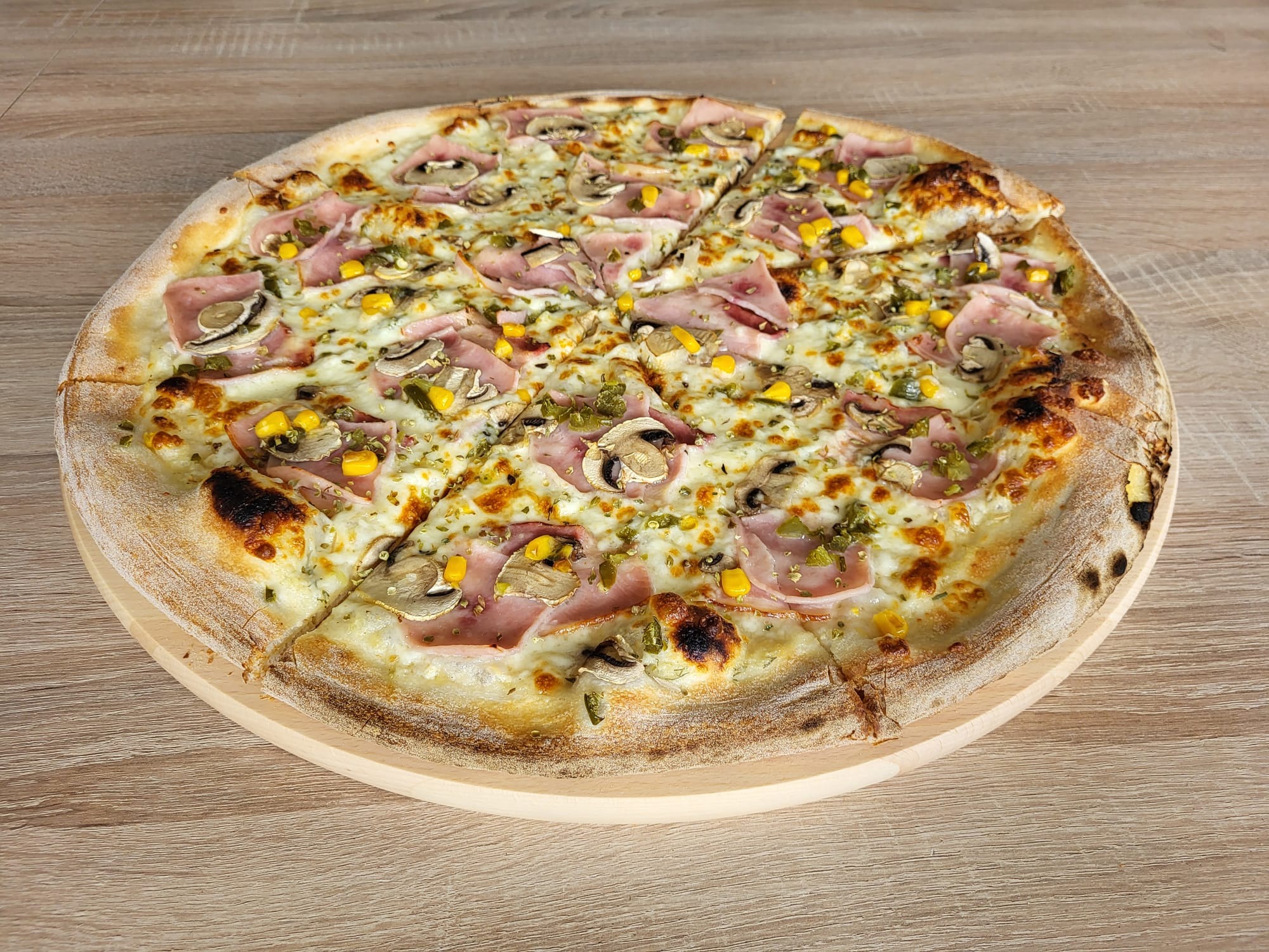 sos pomidorowy, ser, kurczak, kukurydza, kabanos, oreganoPizza Bosmana