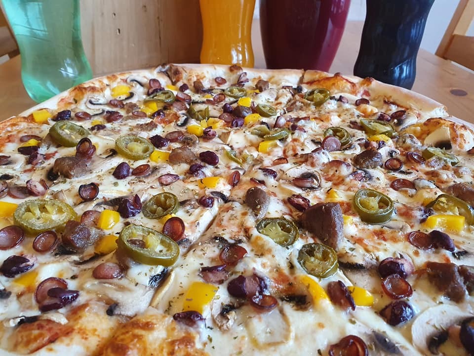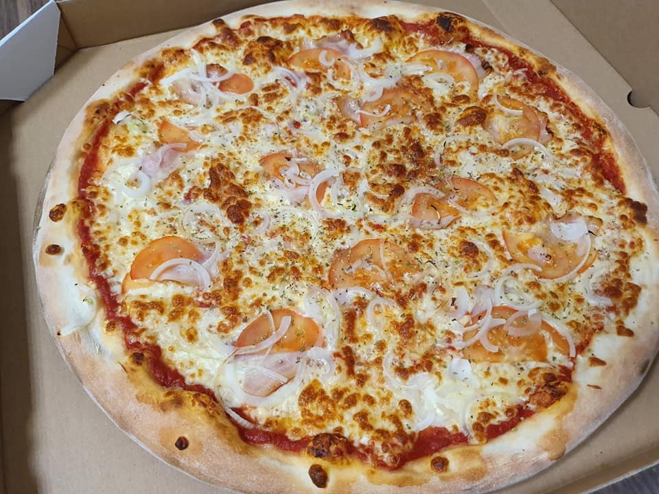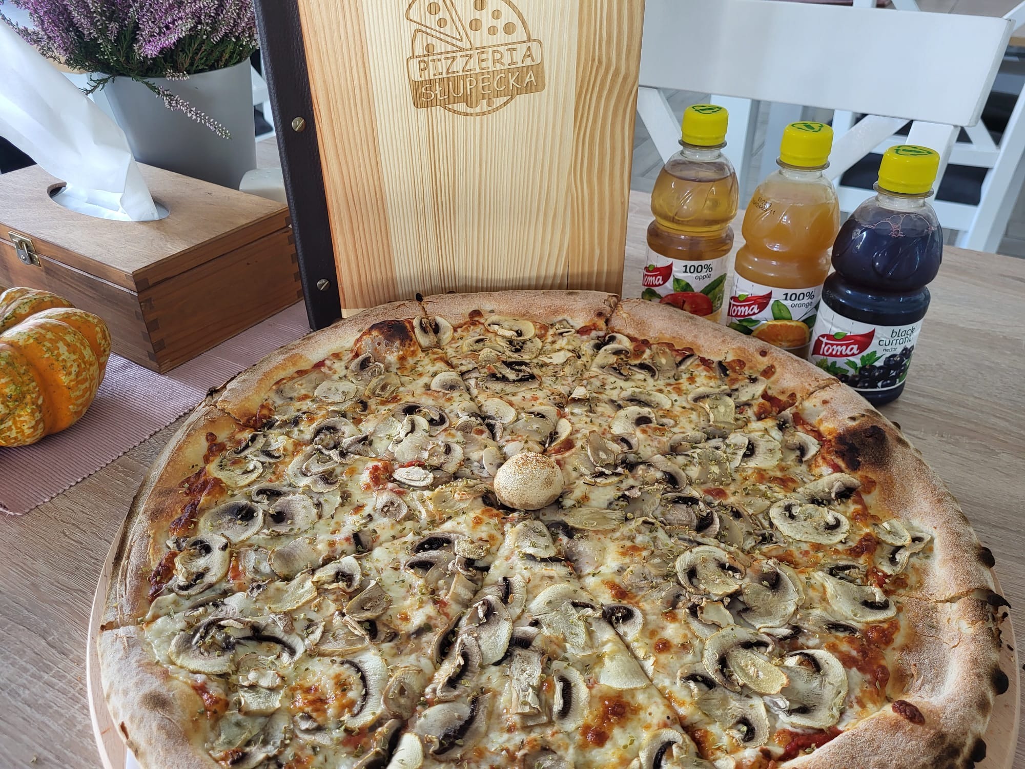 sos pomidorowy, ser, kiełbasa, cebula, oreganoPizza Zbójnicka