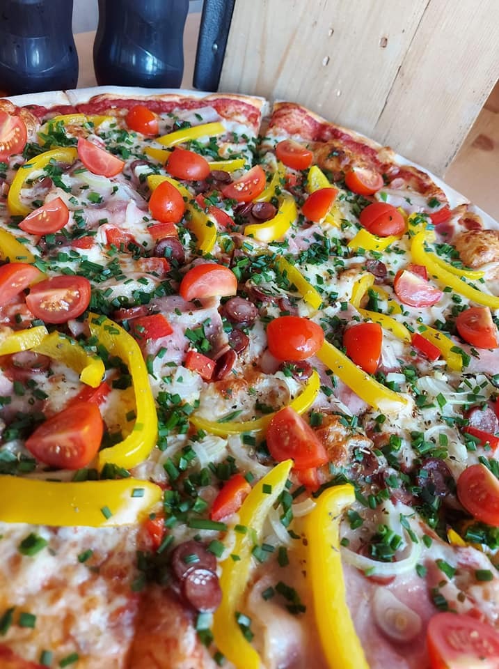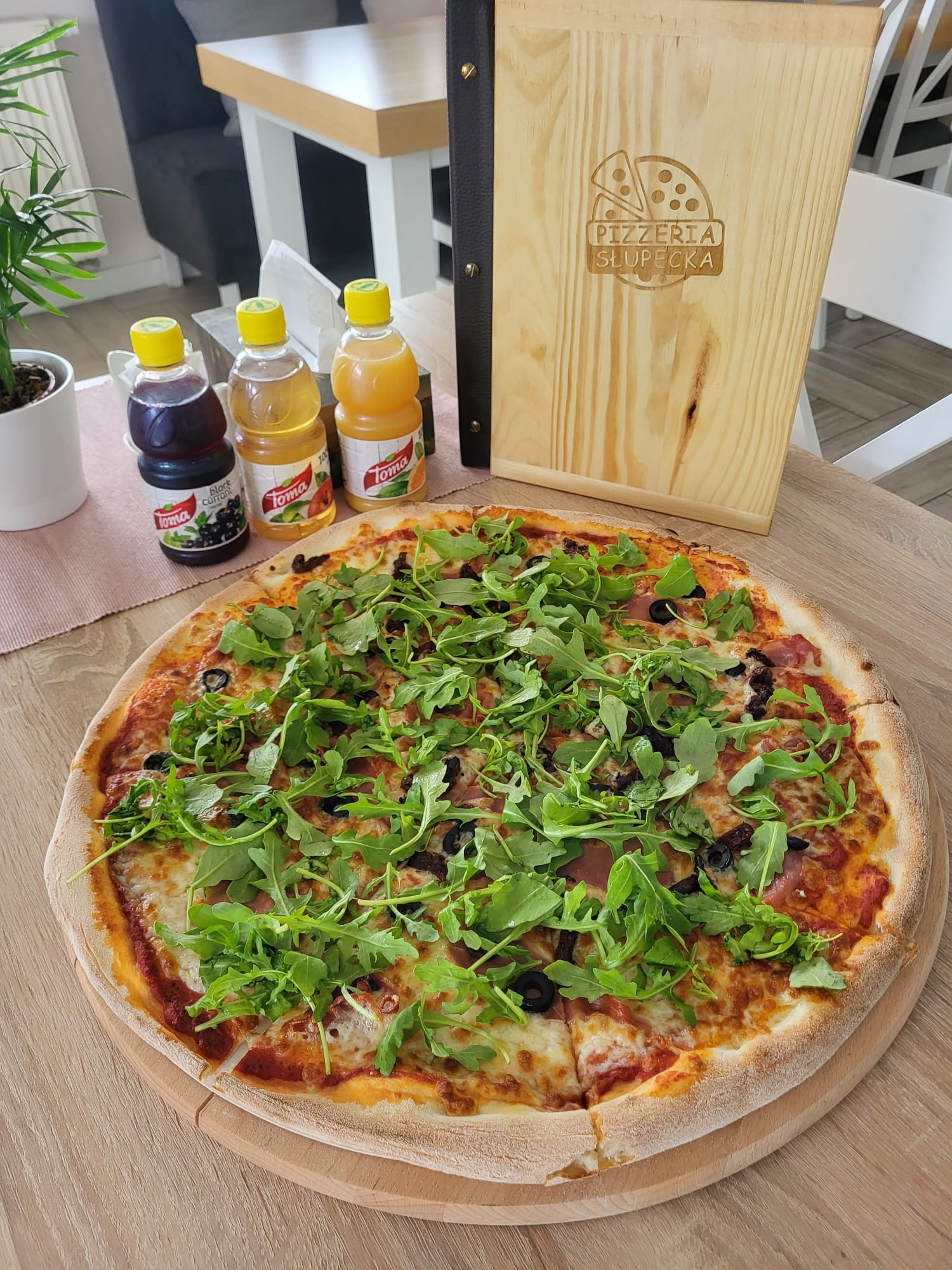 sos pomidorowy, ser, bekon, oreganoPizza Wiejska