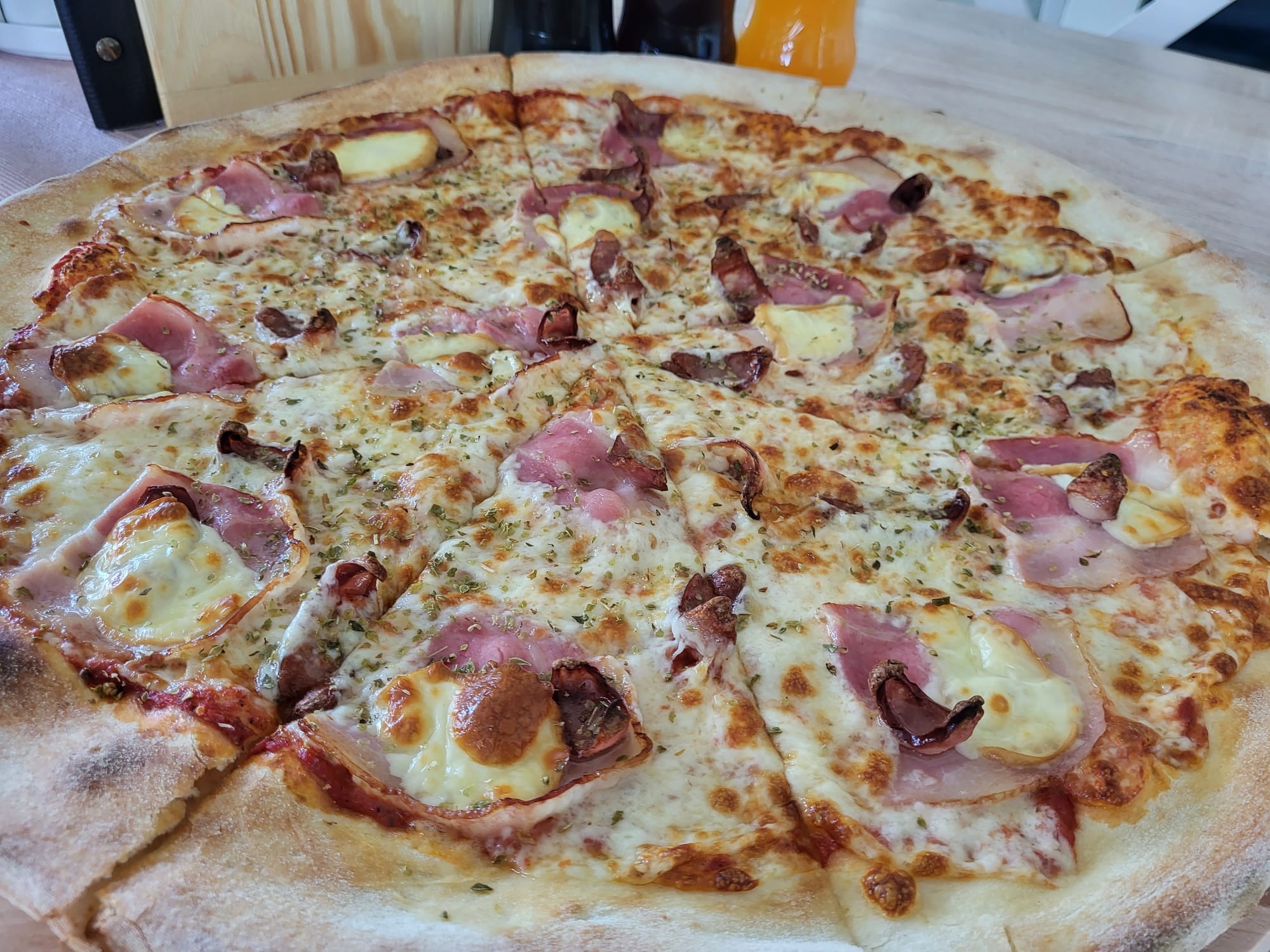 sos pomidorowy, ser, szynka, oreganoPizza Bekon