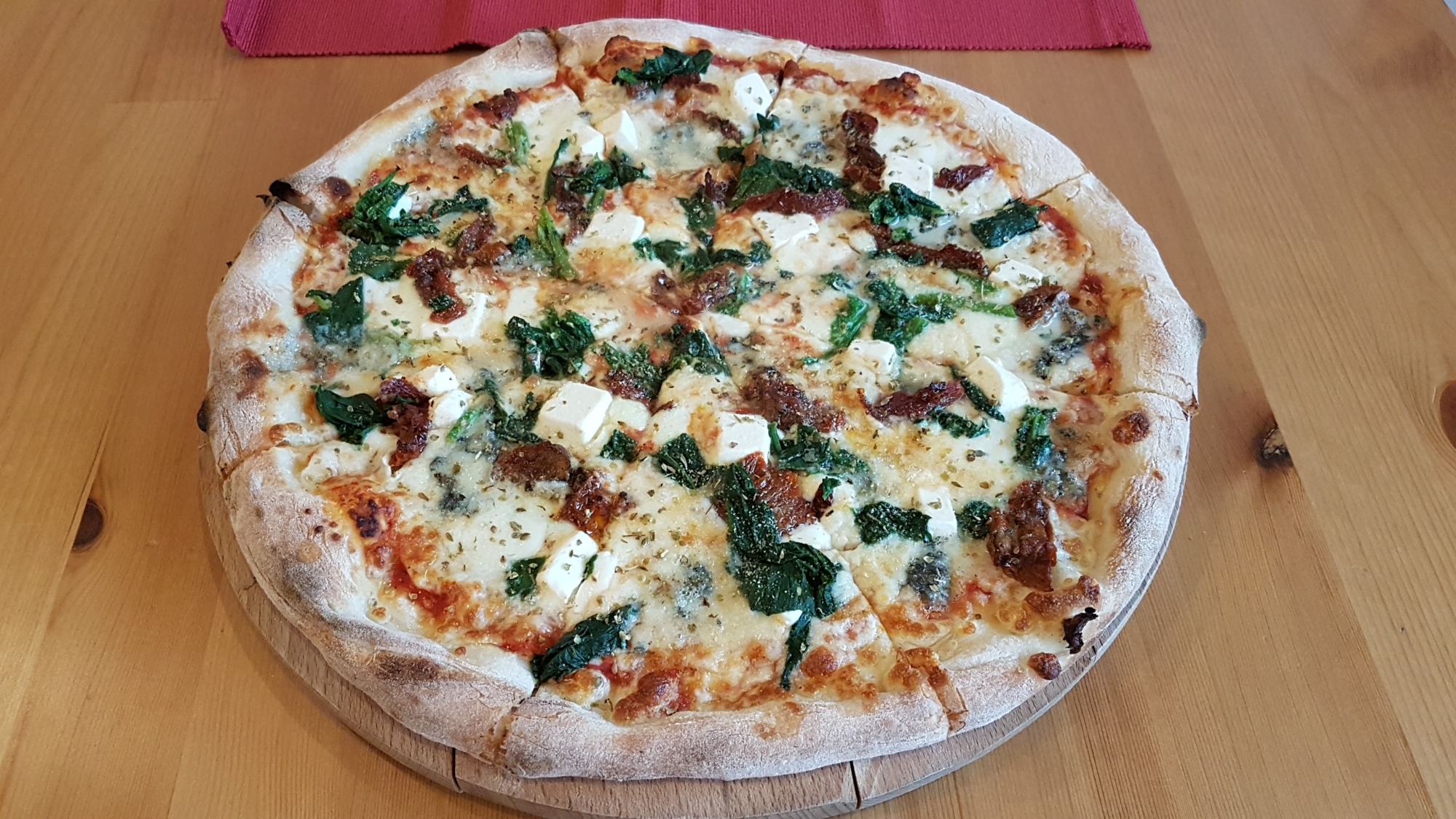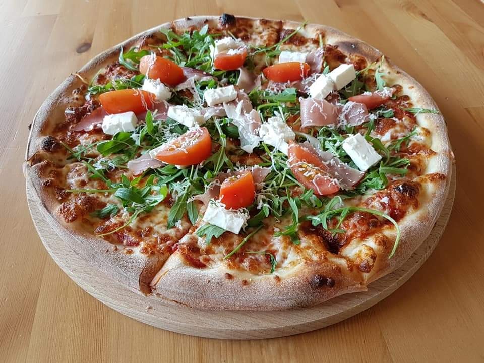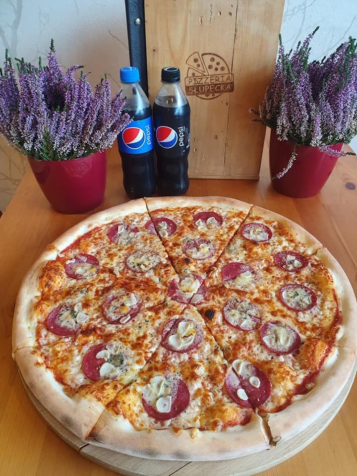 sos pomidorowy, ser, ser gorgonzola, ser góralski, ser feta, oreganoPizza Domowa